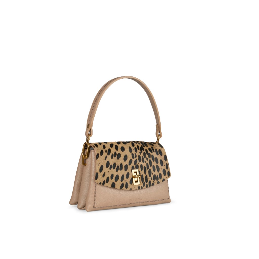 Interiér je podšitý měkkým mikrovláknem a obsahuje vnitřní kapsu pro přehledné uložení drobností. Díky odnímatelnému popruhu ji můžete nosit přes rameno nebo crossbody. Zlaté detaily dodávají kabelce nádech luxusu. Perfektní volba pro ženy, které hledají kvalitu, originalitu a italské řemeslo.